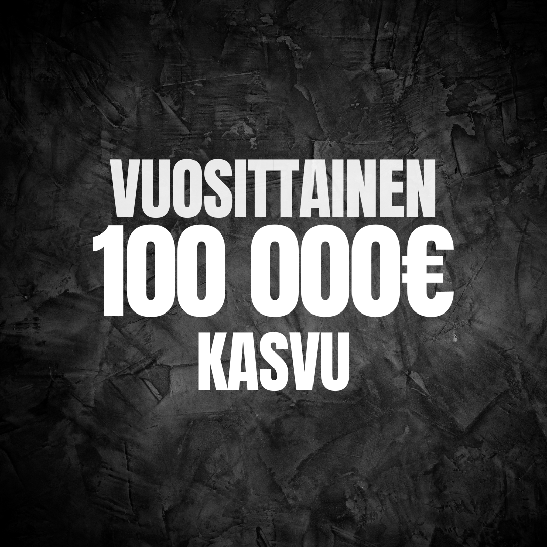 100 000 € kasvu myynneissä joka vuosi kolmen vuoden ajan!